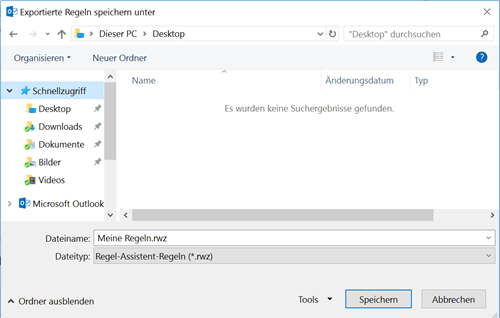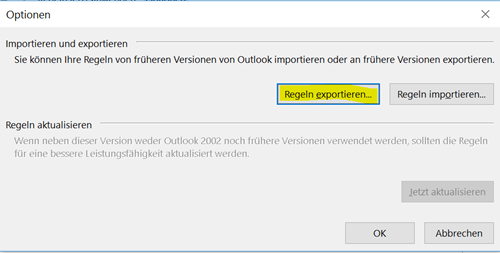 Exportieren und Importieren von Regeln in Microsoft Outlook