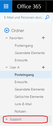 4. Im linken Navigationsbereich wird nun das gewünschte freigegebene Postfach angezeigt. Sie können es wie ein normales Postfach verwenden.
