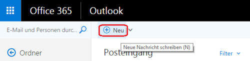 1. Klicken Sie oben in der Menuleiste auf NEU um eine Neue E-Mail zu erstellen.