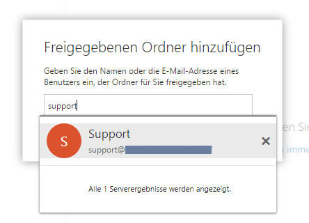 Mit einem freigegebenen Postfach können mehrere Benutzer eine bestimmte E-Mail-Adresse (z.B. support@company.com) verwalten. Das freigegebene Postfach kann als seperates Postfach in Outlook Web App (OWA) eingebunden werden. Die Benutzer können mit diesem Postfach