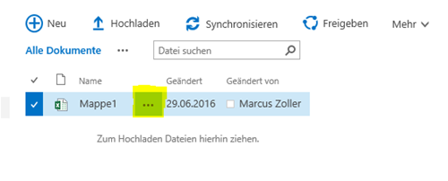 Öffnen Sie die Dokumentenbibliothek in Sharepoint, aus welcher Sie eine Datei als Anhang anfügen möchten: