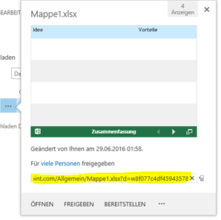Wählen Sie "..." hinter der entsprechenden Datei und es öffnet sich ein Fenster mit der Vorschau und einem Link zu der Datei: