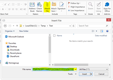 Wechseln Sie nun zu Outlook in die neue E-Mail Nachricht und öffnen Sie den Dialog zum Anfügen einer Datei von Ihrem lokalen PC: